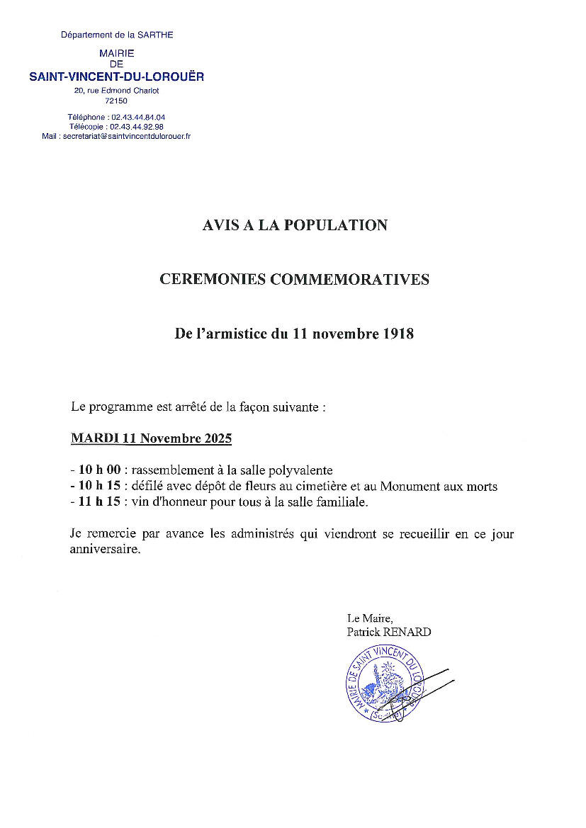 Cérémonies Commémoratives de l'armistice de 1918 le Mardi 11 Novembre 2025 à partir de 10h