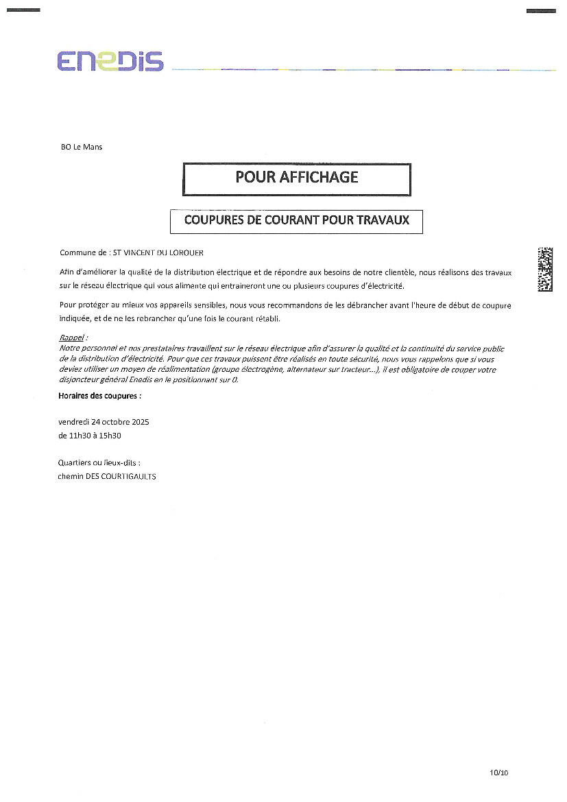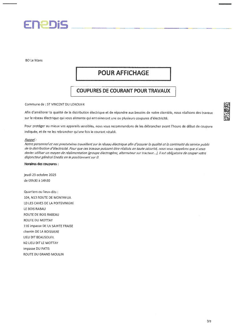 COUPURE ELECTRICITE JEUDI 23 OCTOBRE 2025 de 9h30 à 14h30