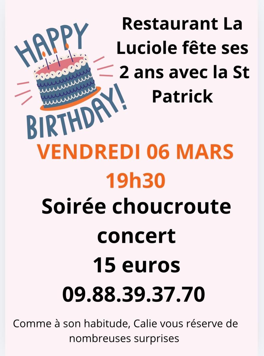 Restaurant La Luciole fĂȘte ses 2 ans avec la St Patrick, le vendredi 6 mars 19h30