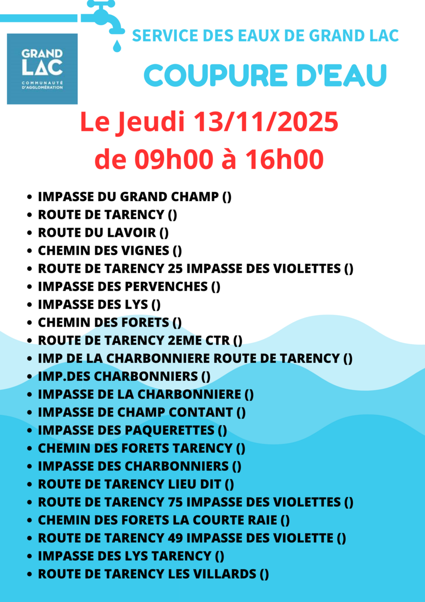 💧 13/11/25 Coupure d'eau annoncée