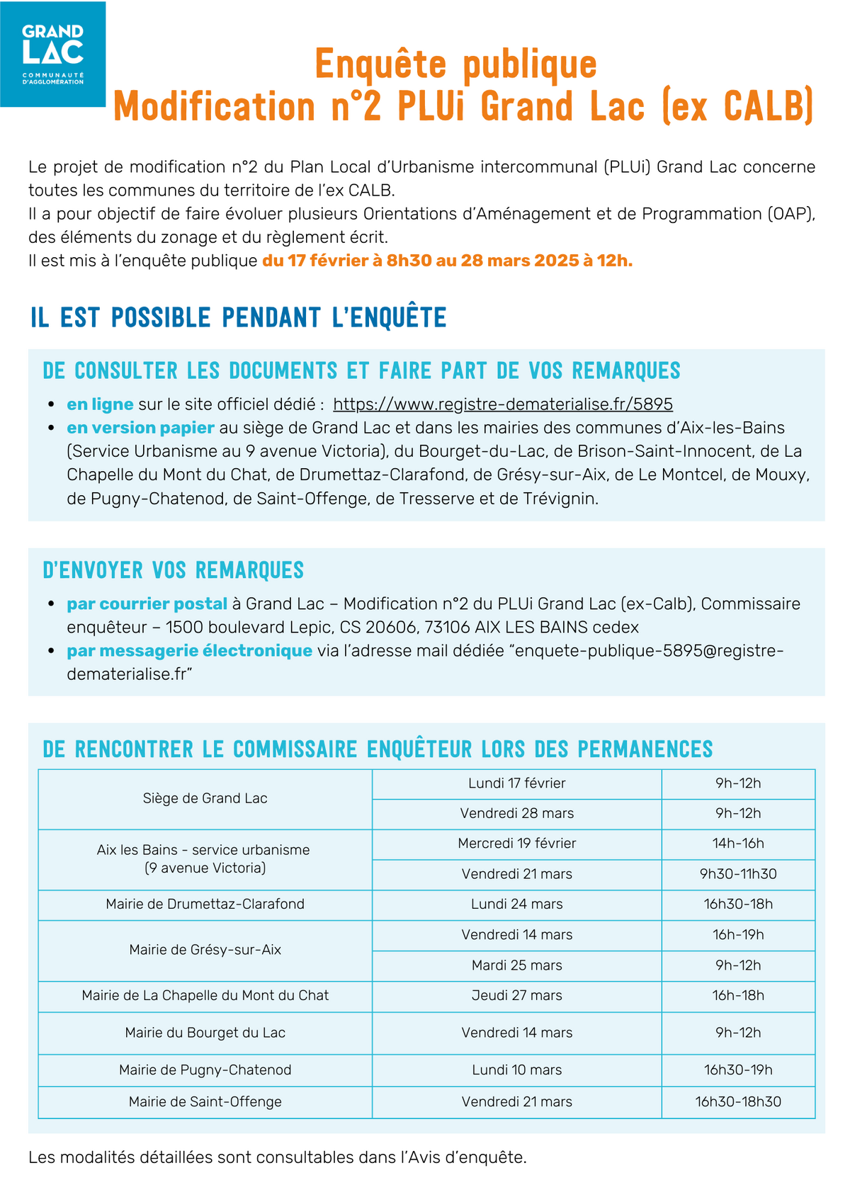 ▶ En version papier au siège de Grand Lac et dans les mairies des communes concernées, dont celle du Bourget-du-Lac.