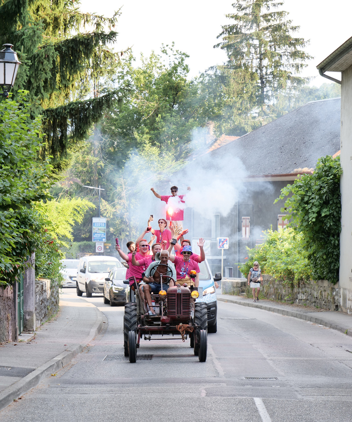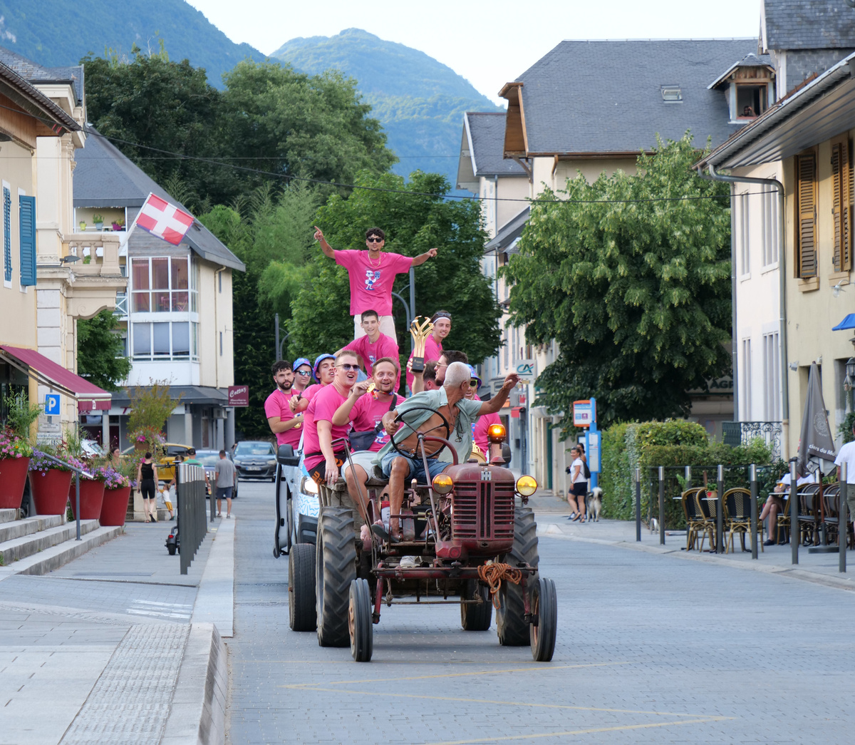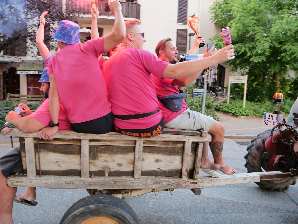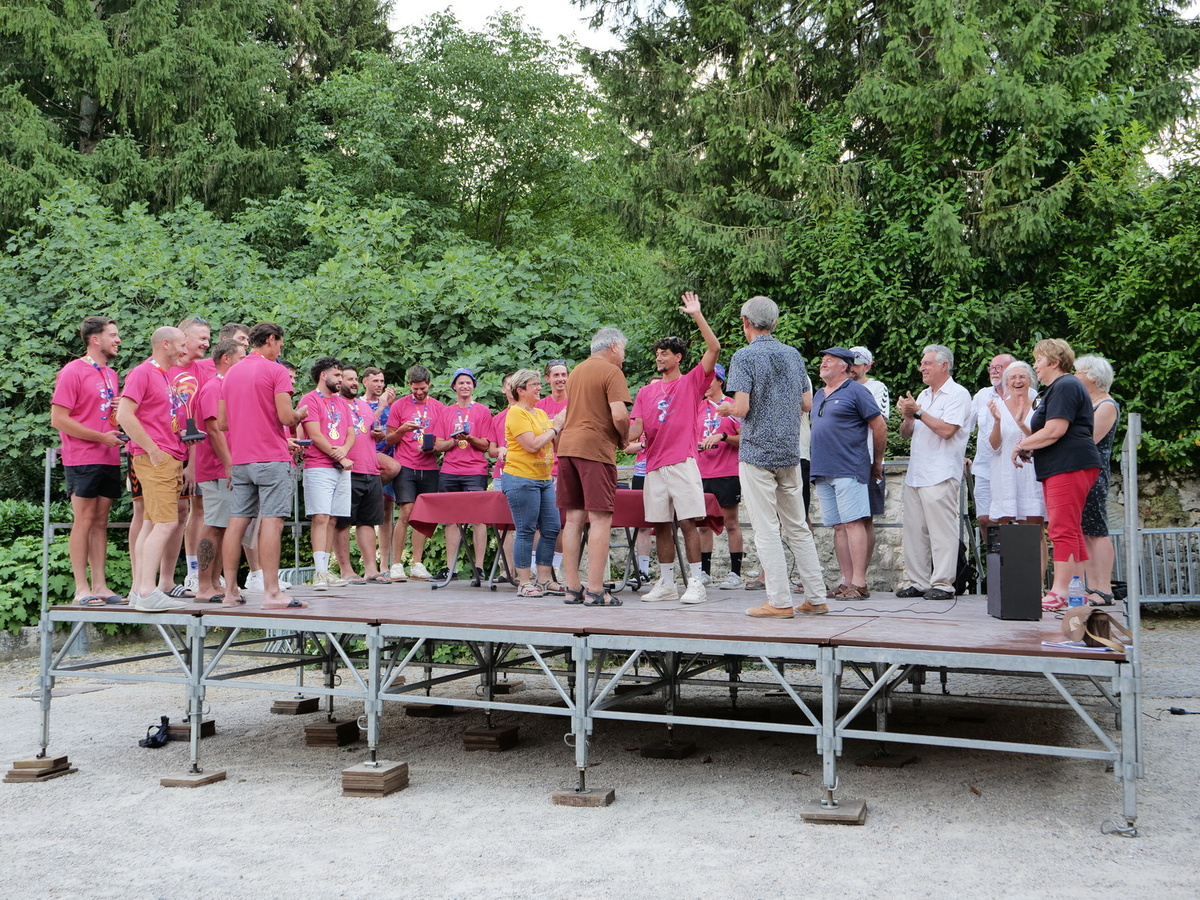 🚜 La soirée a commencé sur les chapeaux de roue (toute proportion gardée…) avec un défilé aussi improbable que réjouissant dans les rues de la commune. Pas de bus à impériale pour ces champions, mais plutôt le vénérable tracteur conduit par Hassan pour transporter la précieuse coupe et les fiers joueurs dans la ville. Moyen de locomotion rustique mais tellement plus fun et déjanté, à l’image de ce cette équipe de copains. Un comité d’accueil chaleureux les attendait au Prieuré.