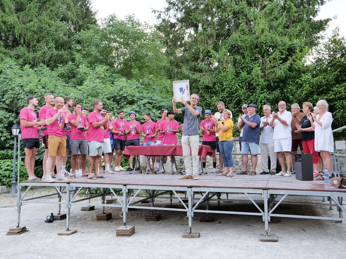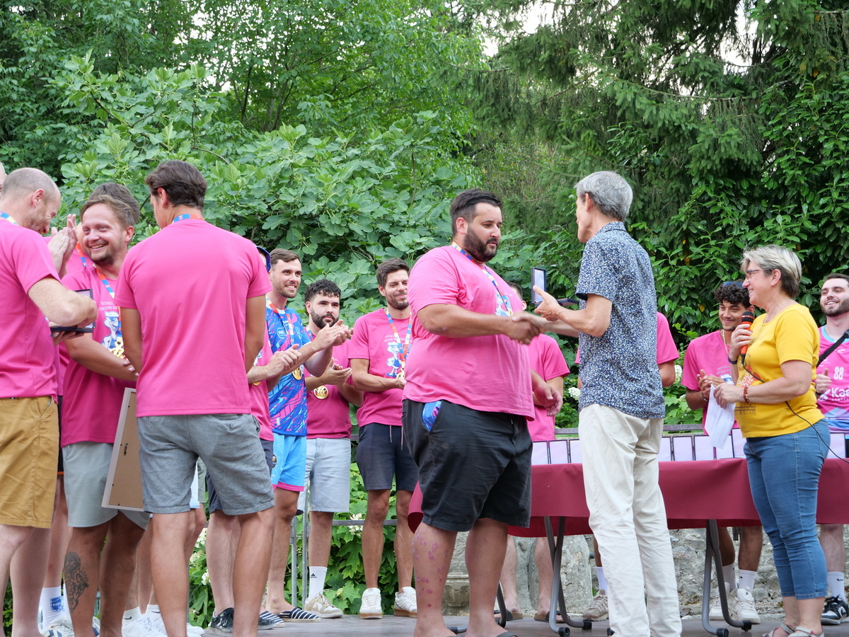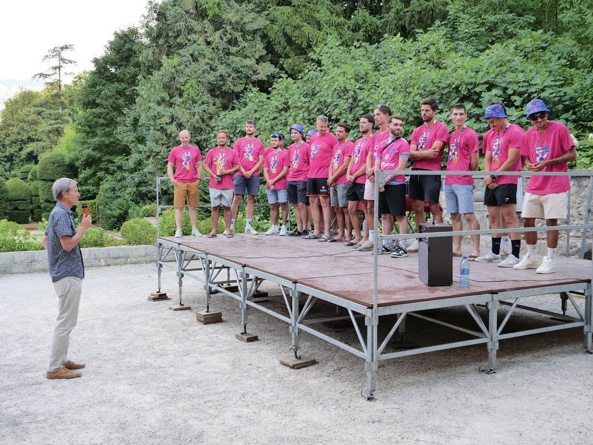 🏅 Les médailles de la ville, spécialement frappées pour l’occasion, ont ensuite été remises une à une aux vainqueurs par les membres du conseil municipal. Une reconnaissance amplement méritée pour ce parcours mémorable jusqu’au sacre du 17 mai à l’Accor Arena de Paris qui était retransmis à la Traverse pour les locaux n’ayant pas pu faire le déplacement.