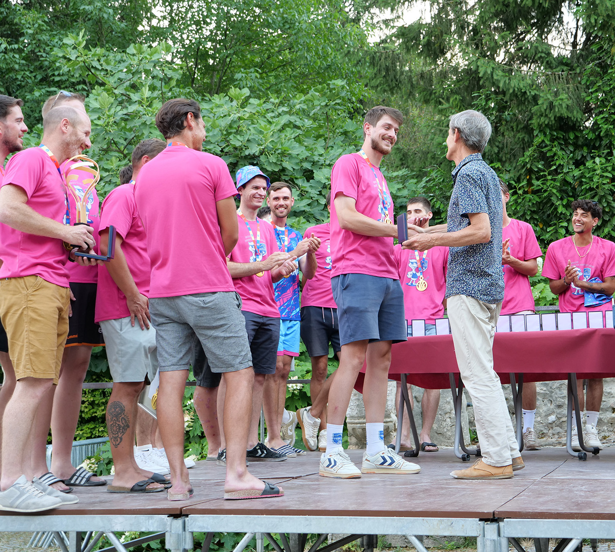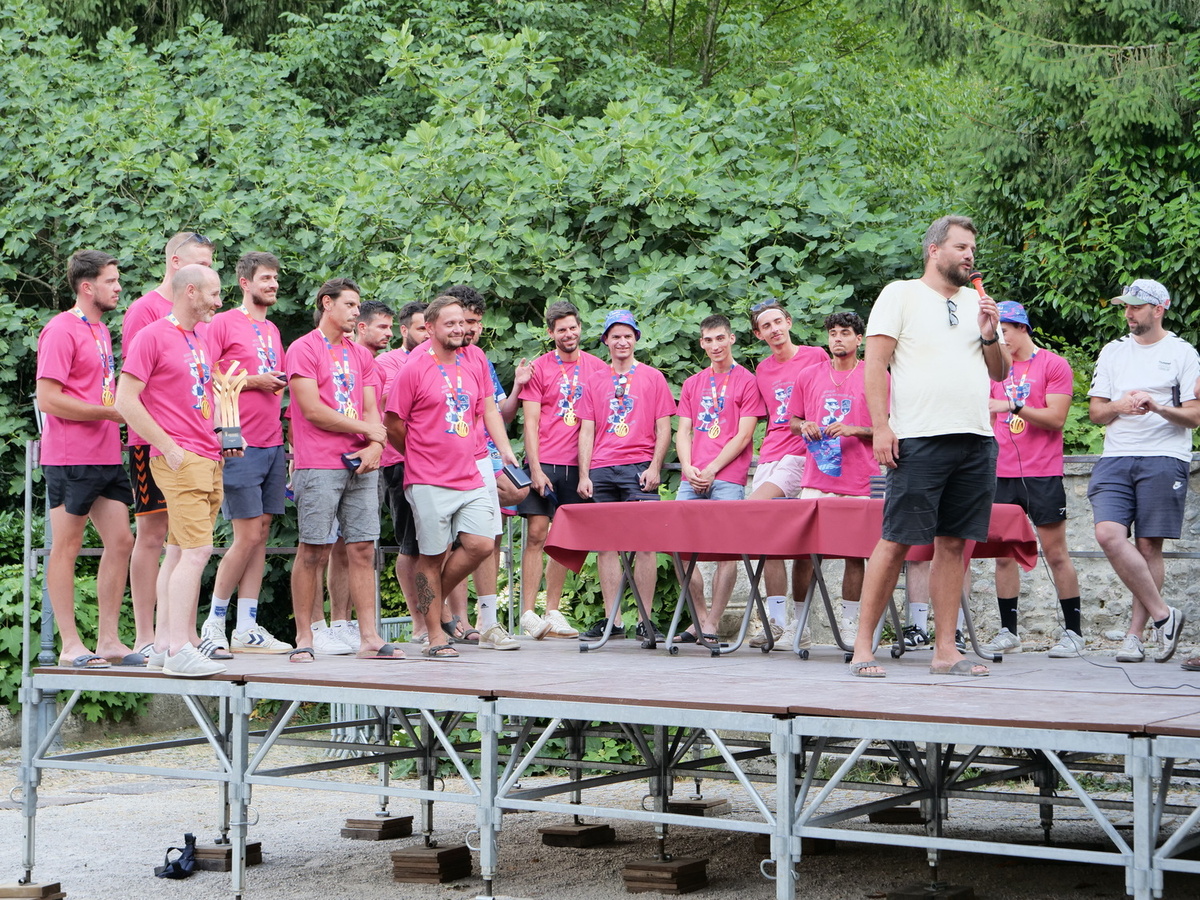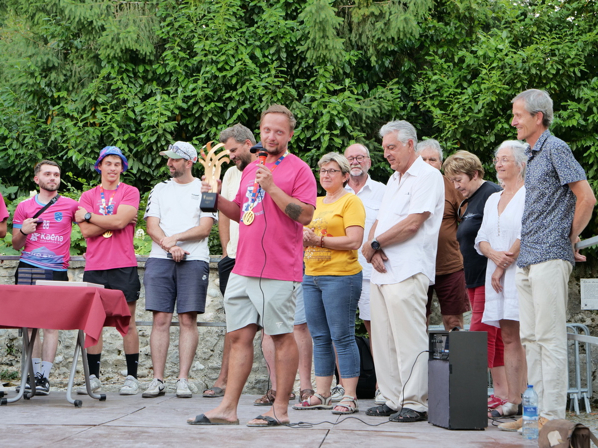 🏅 Les médailles de la ville, spécialement frappées pour l’occasion, ont ensuite été remises une à une aux vainqueurs par les membres du conseil municipal. Une reconnaissance amplement méritée pour ce parcours mémorable jusqu’au sacre du 17 mai à l’Accor Arena de Paris qui était retransmis à la Traverse pour les locaux n’ayant pas pu faire le déplacement.