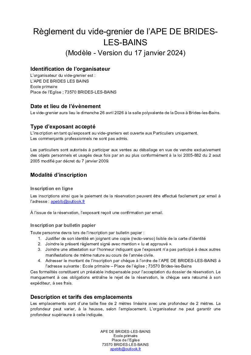 Organisé par l'Association des Parents d'Elèves de Brides-les-Bains.