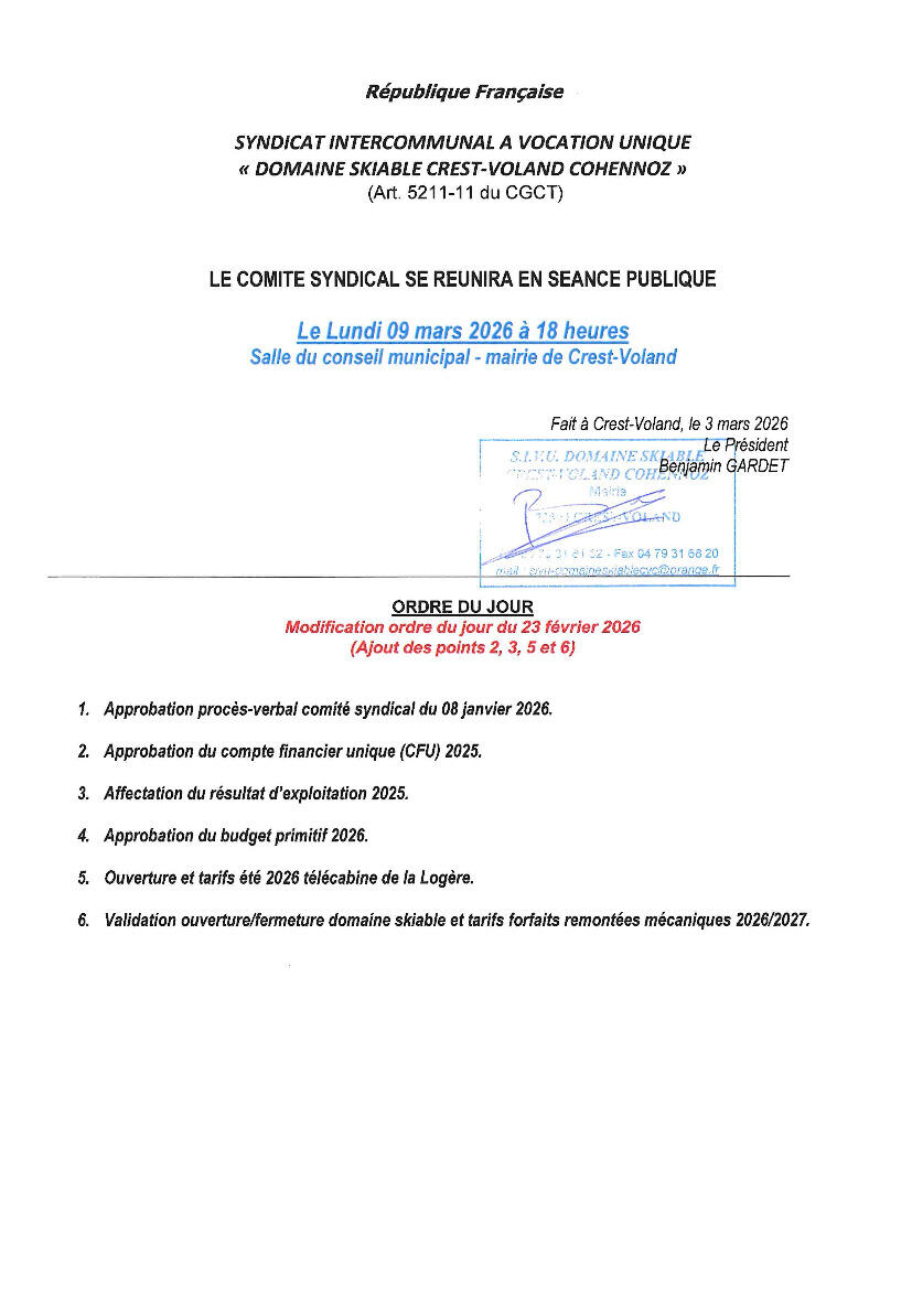 Ordre du jour comité syndical SIVU 09.03.2026