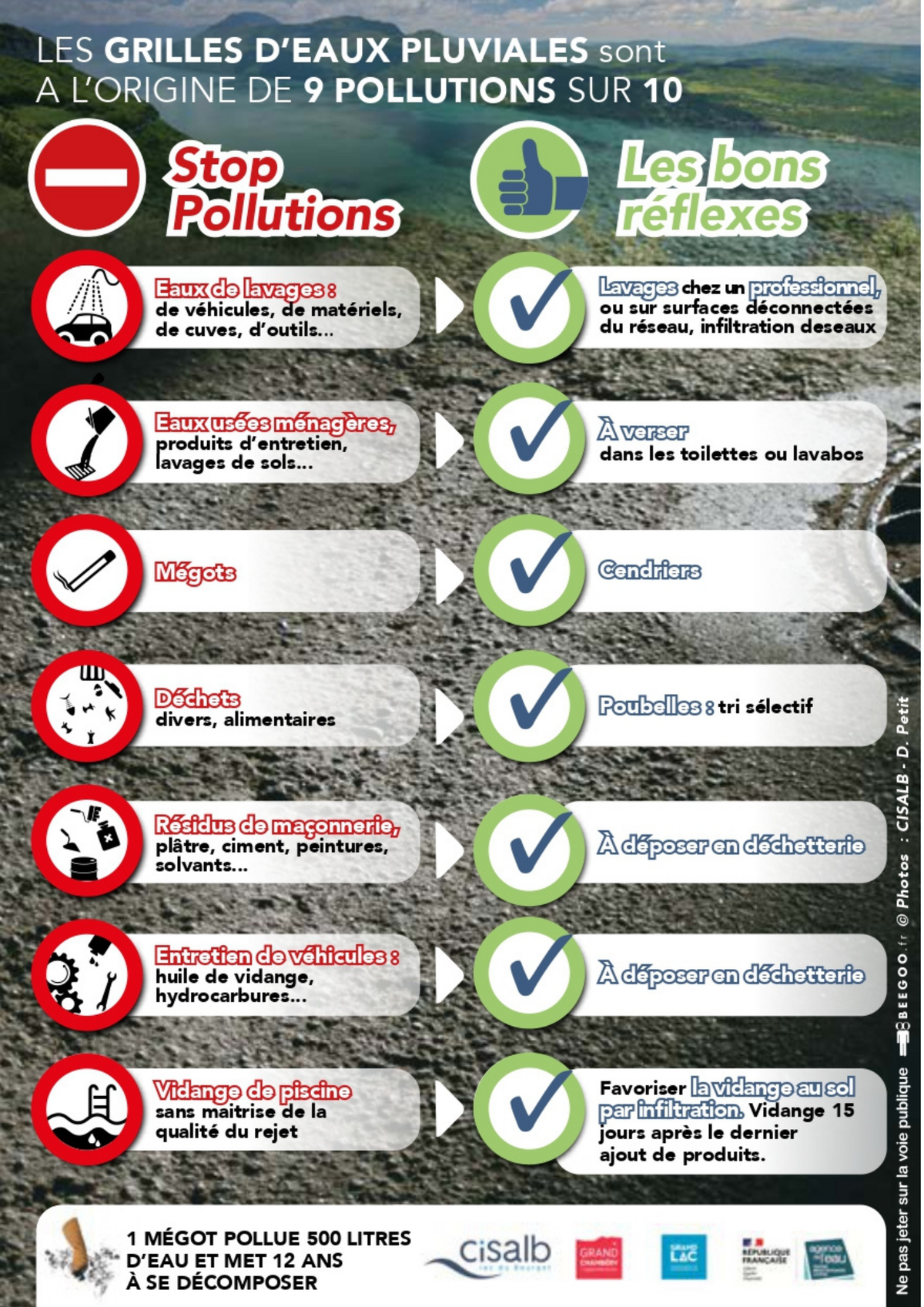 💧 Le CISALB vous rappelle que tout déchet déversé dans les grilles d’eaux pluviales rejoint très rapidement le cours d'eau voisin avant de rejoindre le lac !
