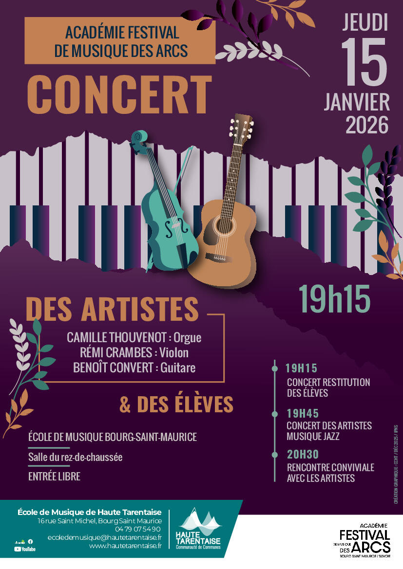 La Communauté de communes de Haute Tarentaise, en partenariat avec son service culturel, a le plaisir de vous inviter à un concert exceptionnel dans le cadre des interventions de l’Académie-Festival de Musique des Arcs 🎼✨