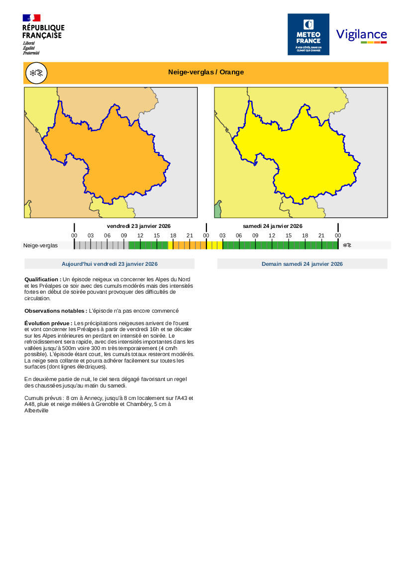 Le département de la Savoie est placé en vigilance ORANGE pour neige et verglas ce vendredi 23 janvier 2026.