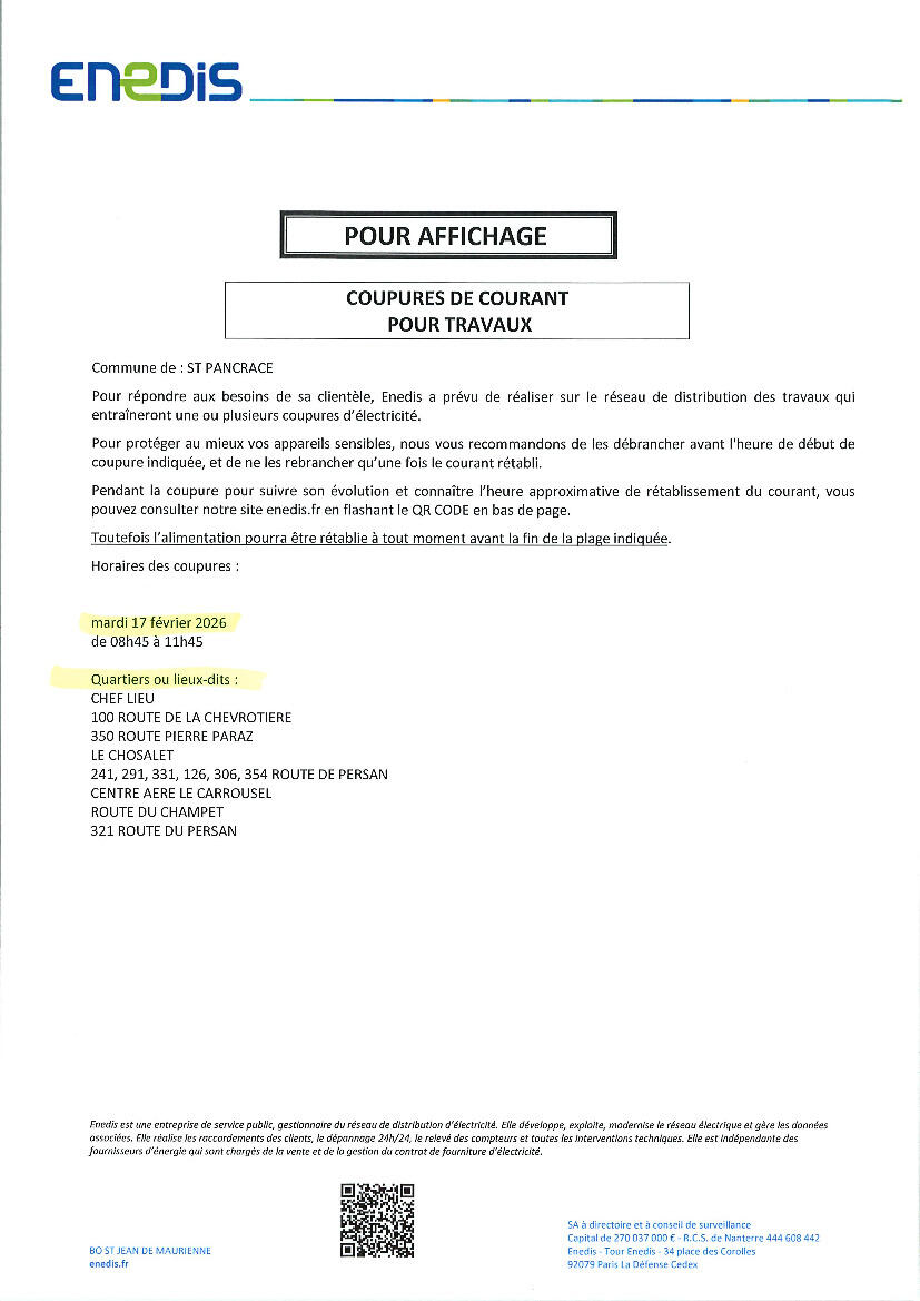 ENEDIS Coupures du 17 Février 2026