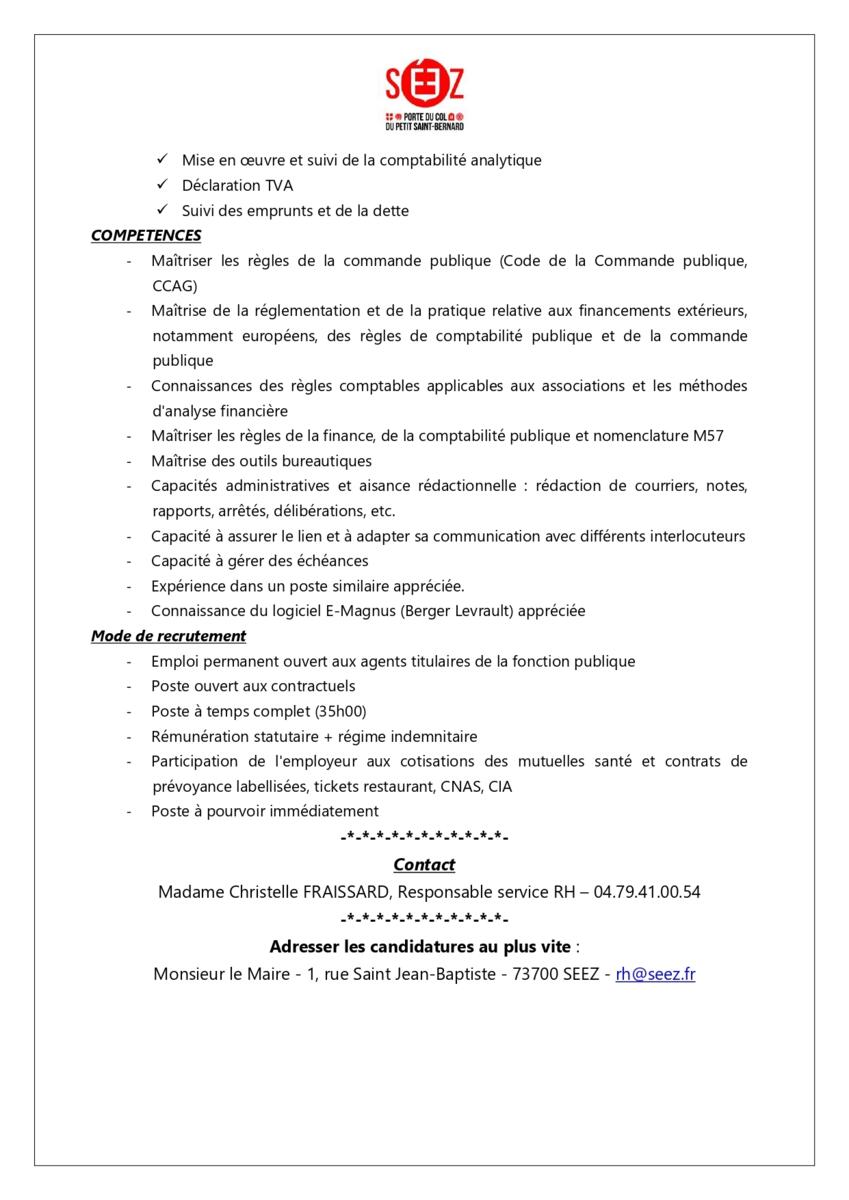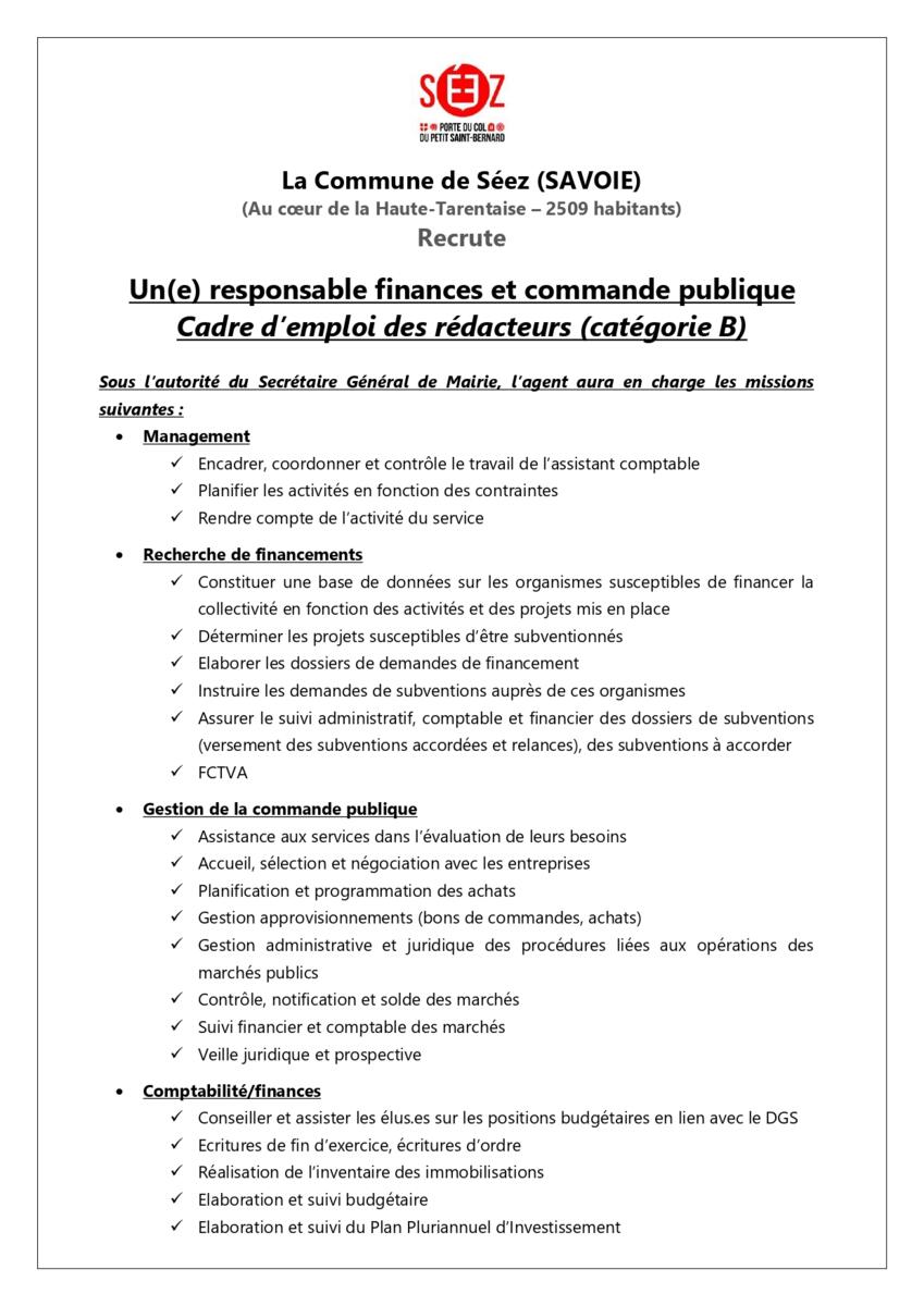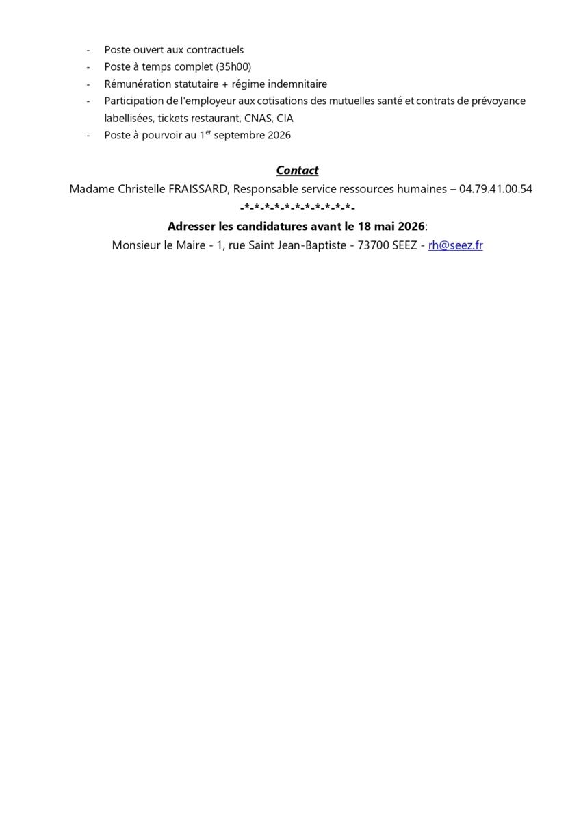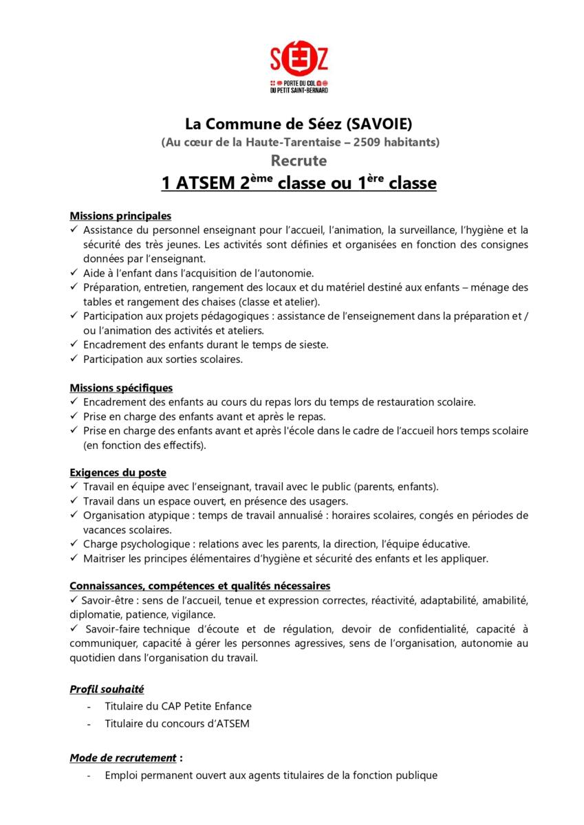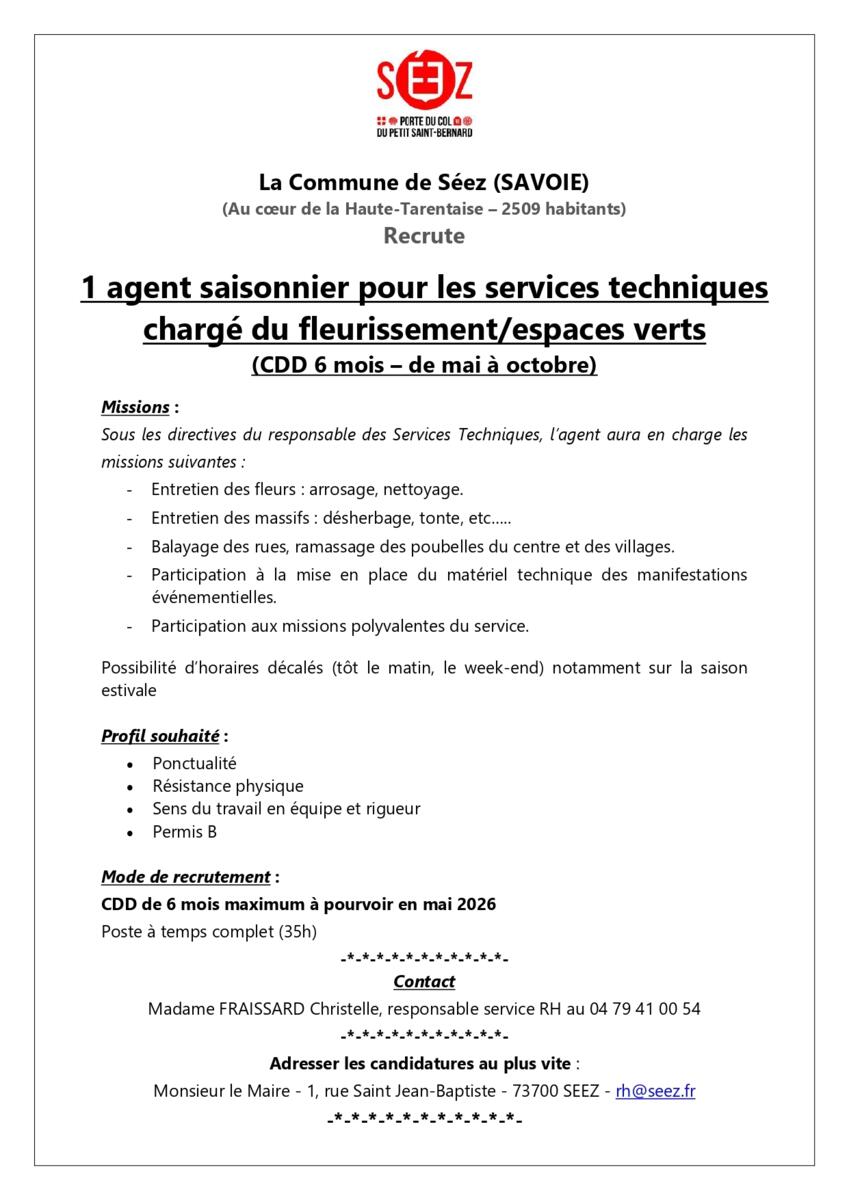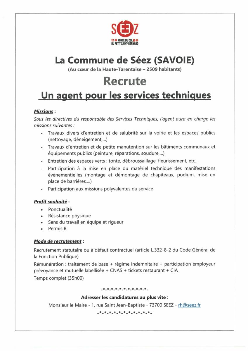La commune de Séez recrute :