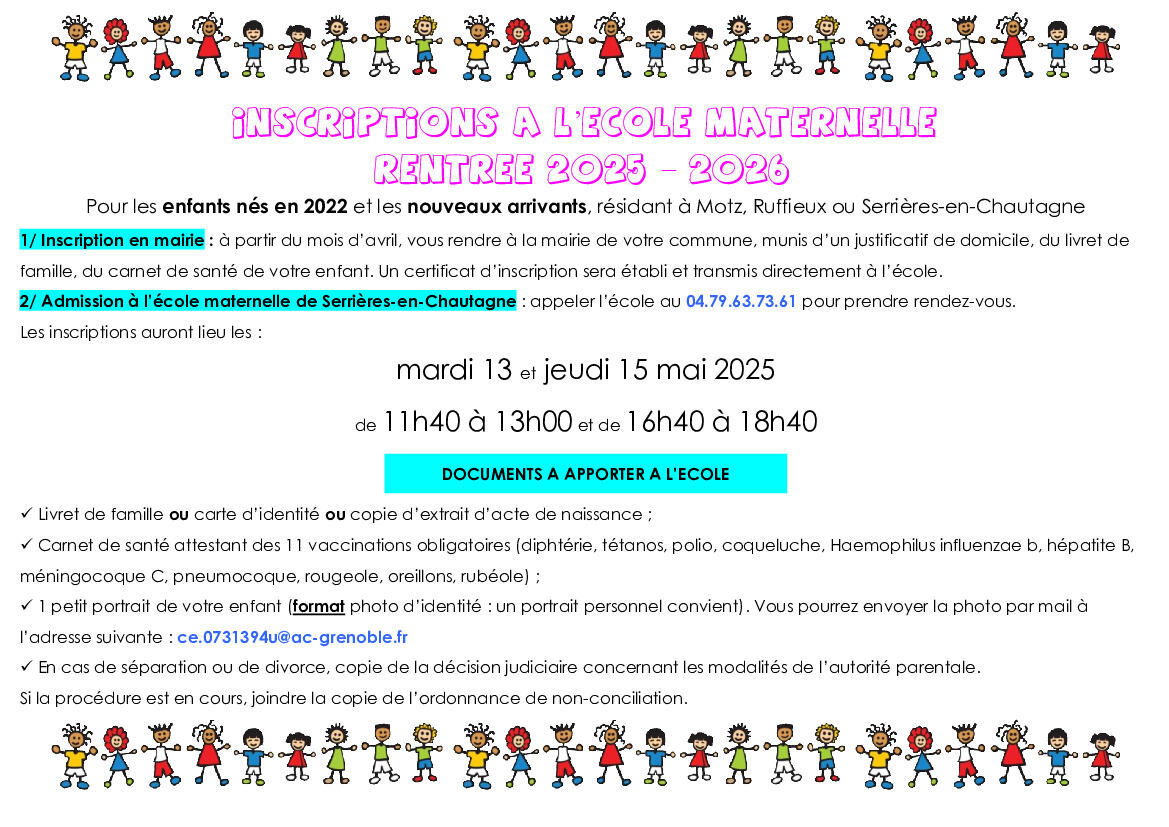 Inscrptions à l'école maternelle de Serrières-en-Chautagne