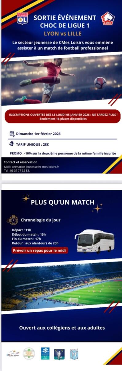 Sortie évènement choc de Ligue 1 Lyon-Lille Cmes Loisirs