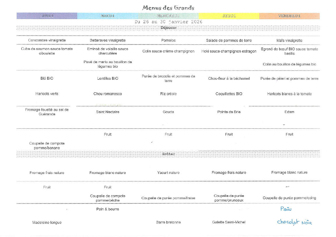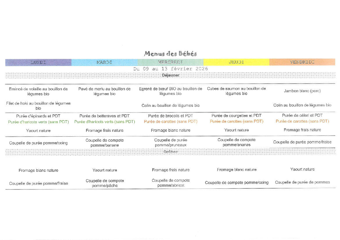 Vos menus de la crèche pour la semaine 5