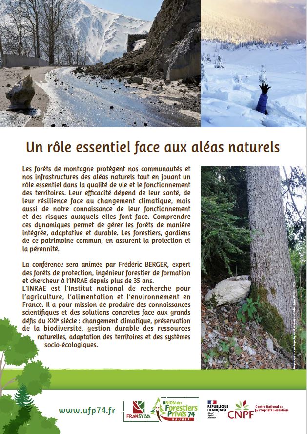 La section BAUGES de l’Union des Forestiers Privés 74organise une conférence sur le thème : “Les forêts de montagne : un bouclier naturel contre les risques !”