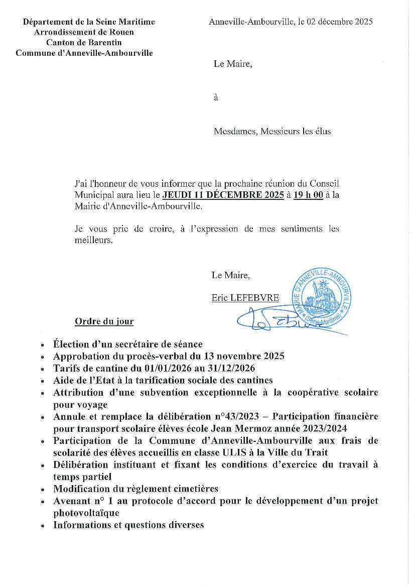 Prochain Conseil Municipal 11/12/2025 à 19h