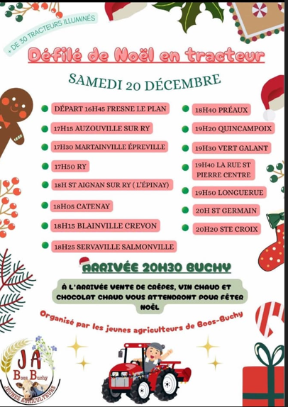 N'oubliez pas le 20 décembre à partir 17 h dégustation de vin ou chocolat chaud et défilé des tracteurs décorés