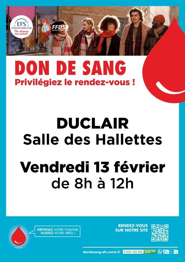 Don du sang - DUCLAIR - vendredi 13 février 2026
