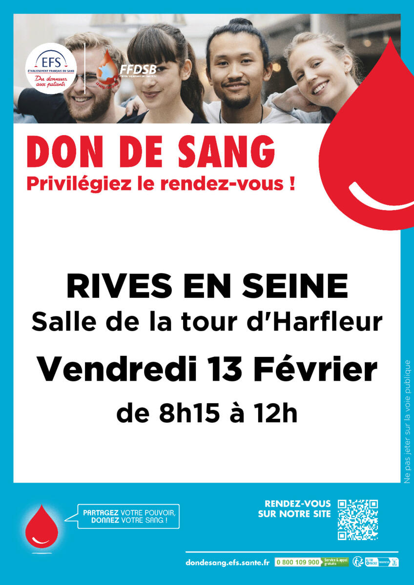 📅 Prochaine collecte de sang : vendredi 13 février de 8h15 à 12h à la salle de la tour d’Harfleur