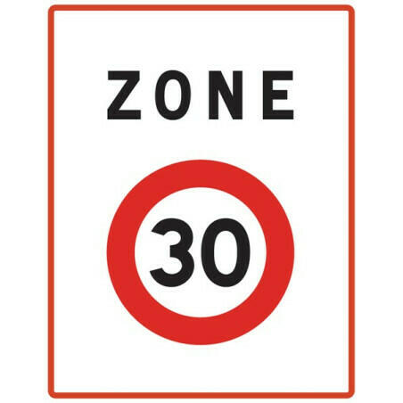 – elle est signalée, à chaque entrée, par un panneau B30 ; puis un panneau B51 indique la « fin de zone 30 » ;
