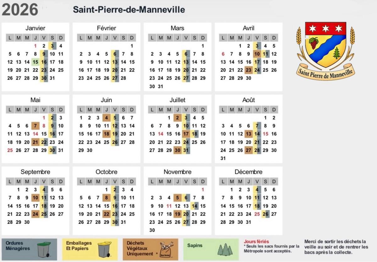 🗓️ Vous trouverez ci-joint le calendrier dématérialisé des ramassages des ordures ménagères et des déchets verts pour l’année en cours.
