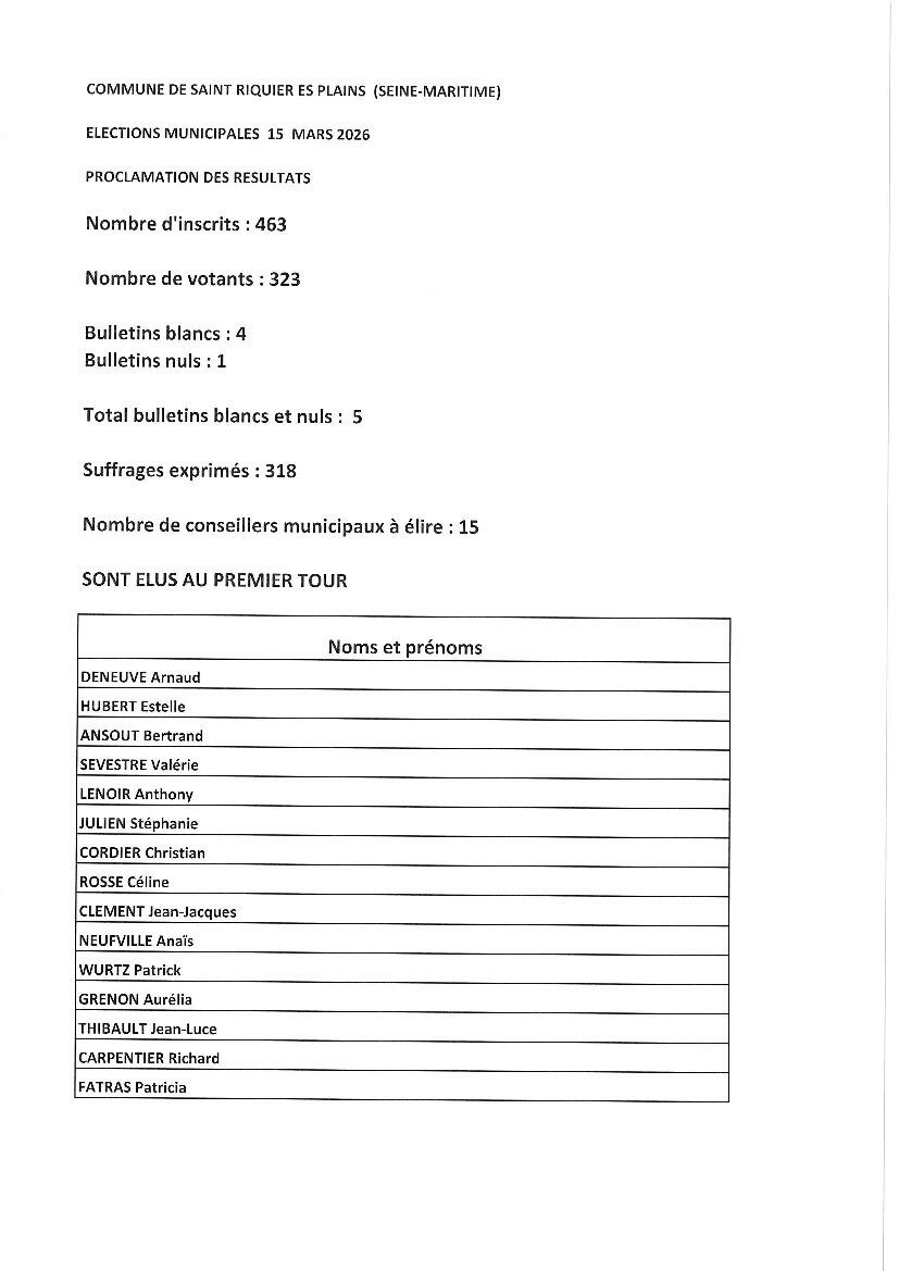 Résultats élections municipales du 15 mars 2026 3/15/26 Résultats élections municipales du 15 mars 2026 Pas de deuxième tour