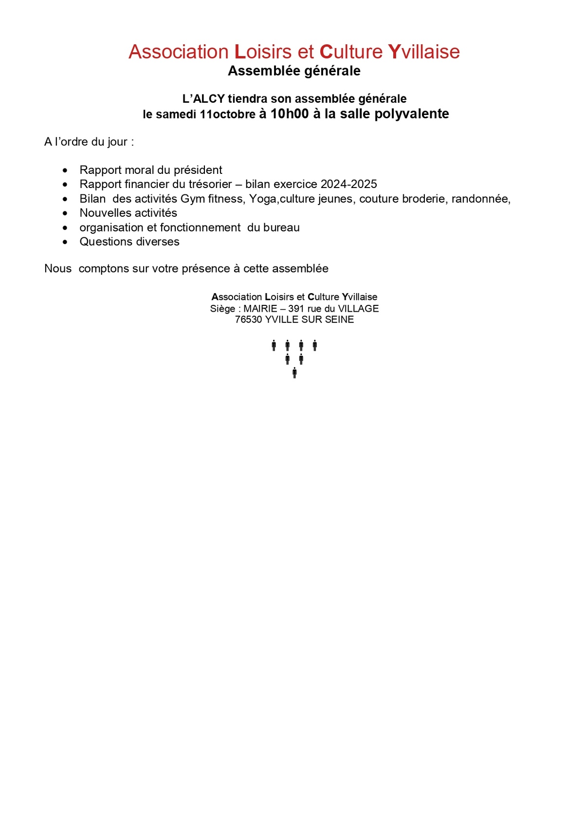 ALCY - Assemblée générale - samedi 11 octobre 25 à 10h