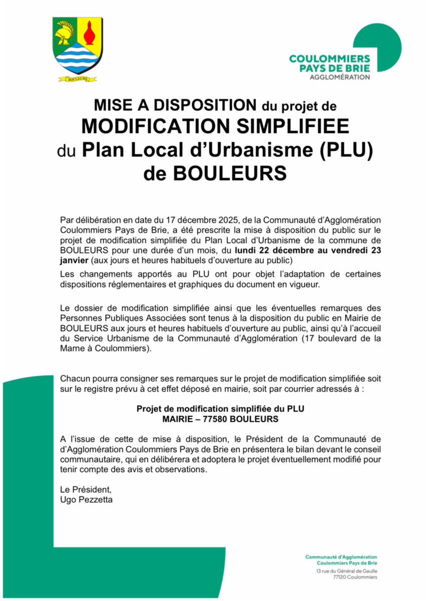Projet modification simplifiée du P.L.U. de Bouleurs