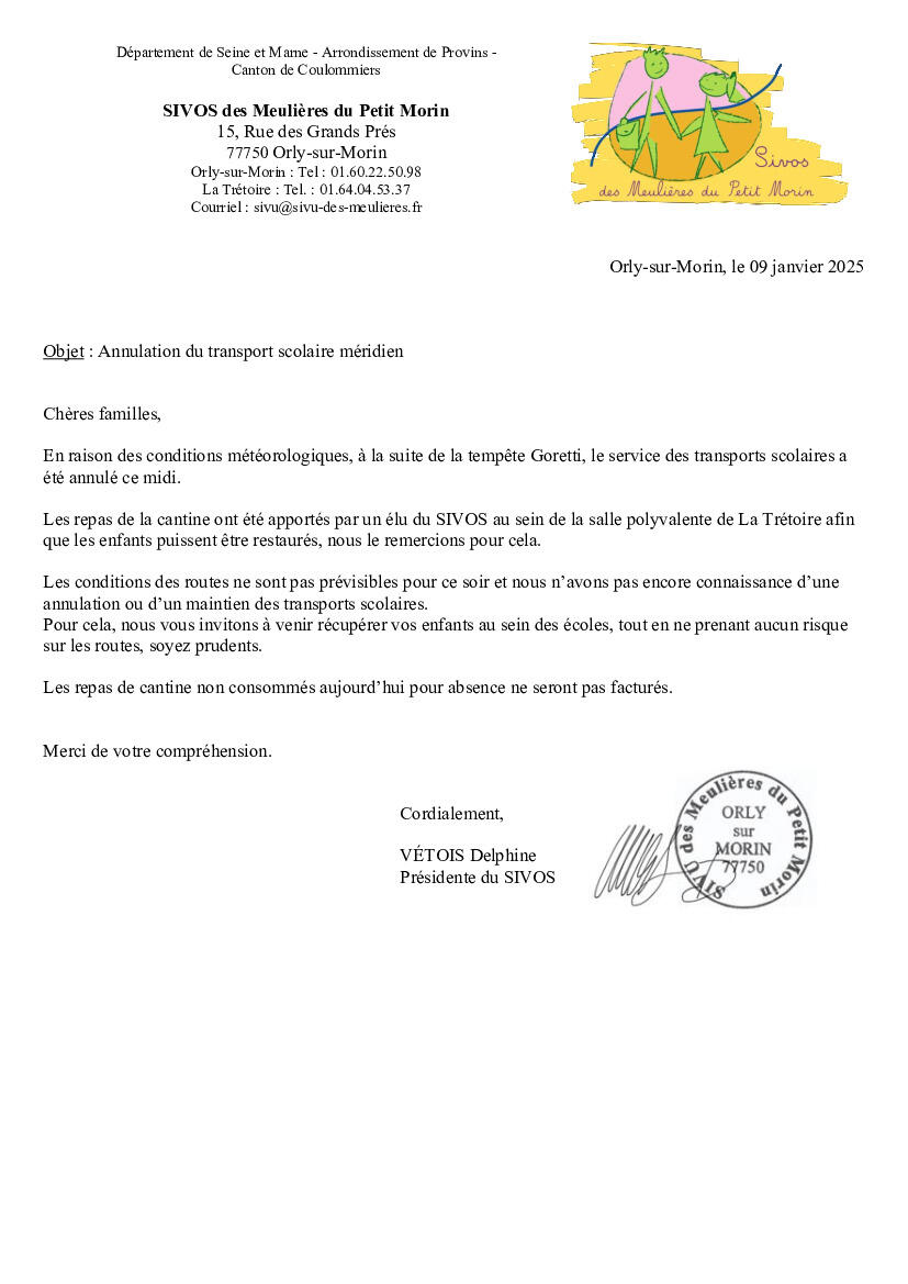 Annulation du transport scolaire méridien