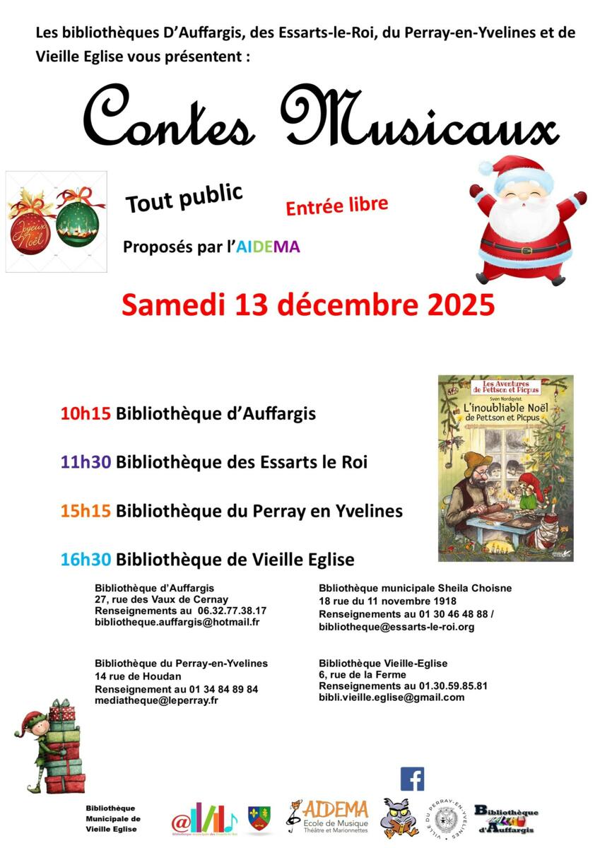 Samedi 13 décembre : contes musicaux à la Bibliothèque 12/7/25 Samedi 13 décembre venez aux contes musicaux à la Bibliothèque d’Auffargis à 10h15.
