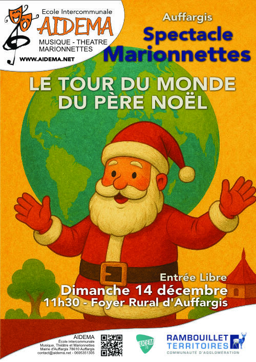 L’AIDEMA propose un spectacle de marionnettes musicales le 14 décembre à 11h30 au Foyer Rural d’Auffargis. Nous vous y attendons nombreux.