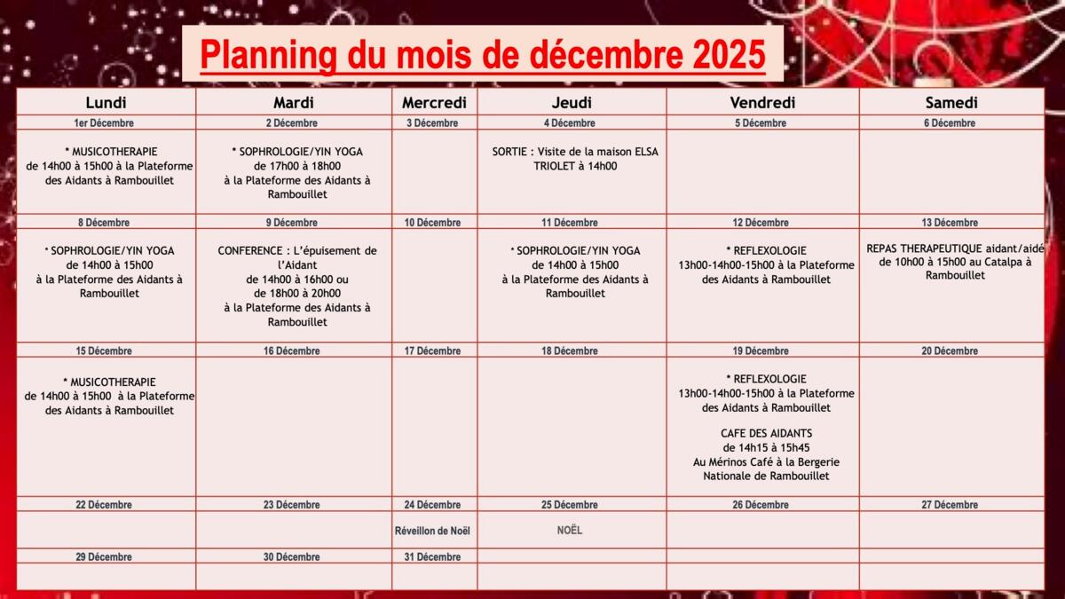 PLATEFORME DES AIDANTS – PLANNING MOIS 12-2025 / 01-2026