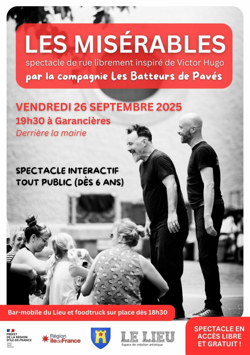 La compagnie "les batteurs de pavés" présentera son spectacle (tout public dès 6 ans, gratuit et interactif), proposé par Le Lieu (espace de création artistique yvelinois), en partenariat avec la commune de Garancières, le vendredi 26 septembre 2025 à 19h30 à Garancières !