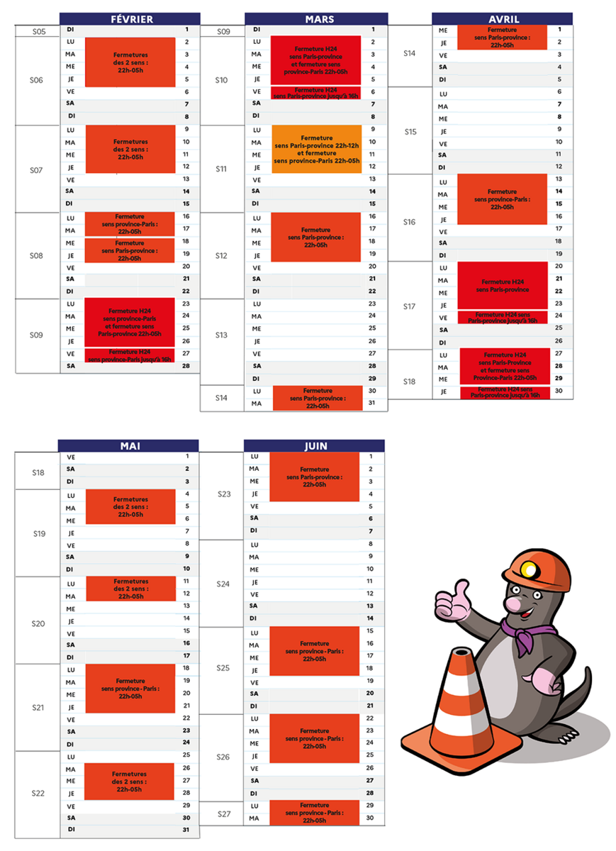 Tunnel Chennevières : Planning des fermetures février