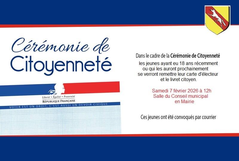 Cérémonie de Citoyenneté : samedi 7 février 2026