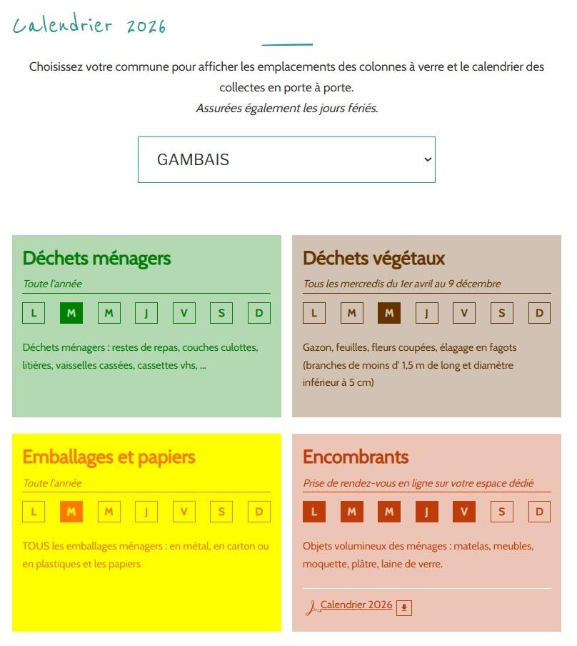 Collectes déchets : Calendrier 2026