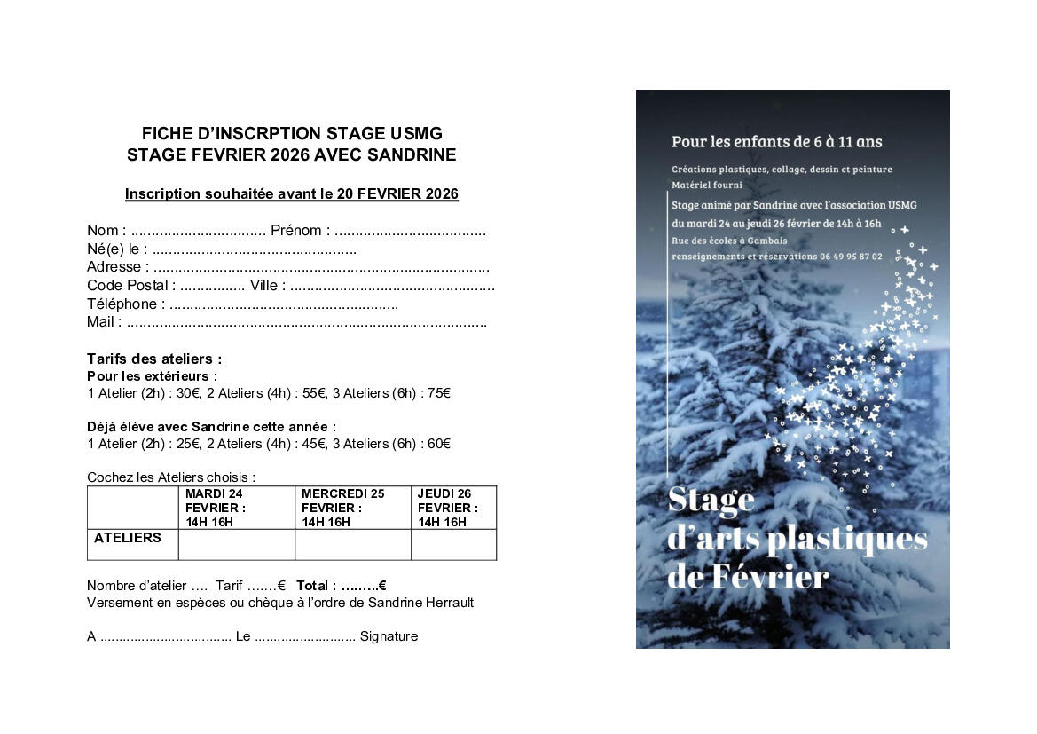 24, 25 et 26 février 2026 : Stage USMG arts plastiques