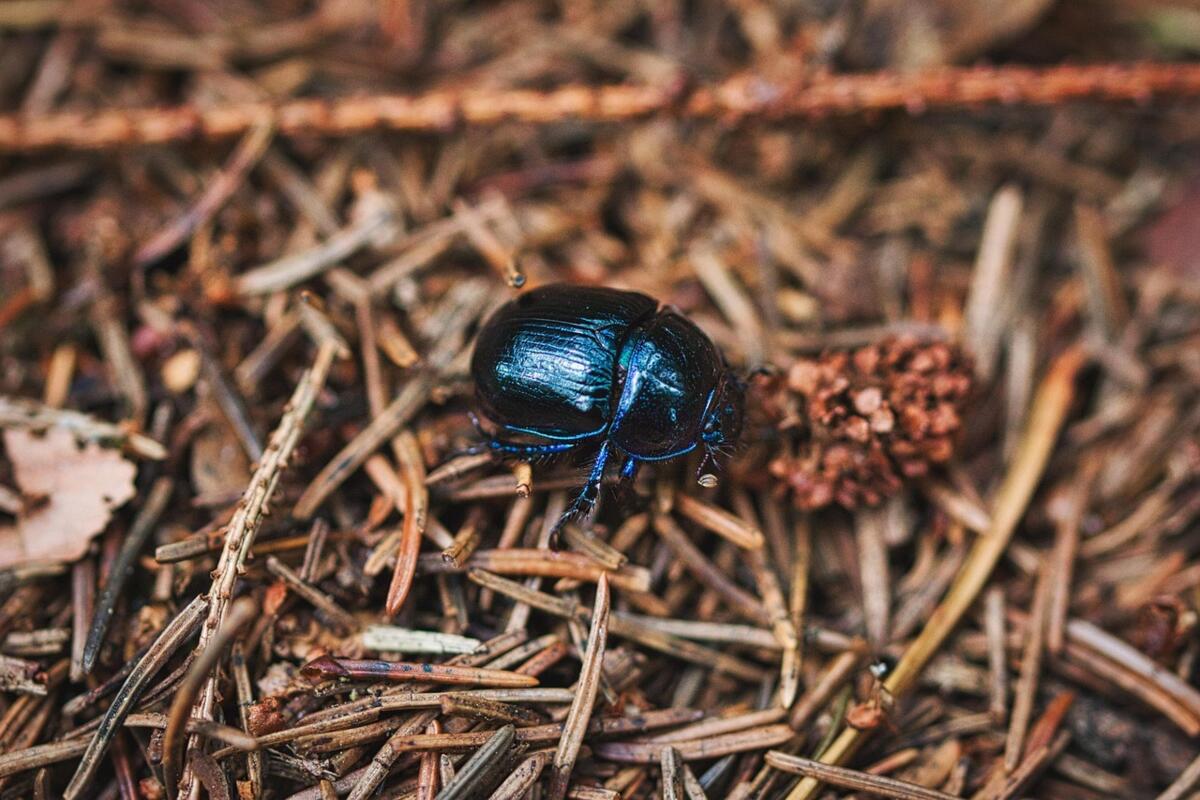 Impossible de ne pas le rencontrer lors des promenades en forêt 🌲. Il chemine lentement sur le chemin, avec des reflets bleus métalliques sur le ventre. C’est un bousier qui ne promène pas sa boule de crottin, mais creuse ses galeries de ponte sous les excréments des gros mammifères forestiers.