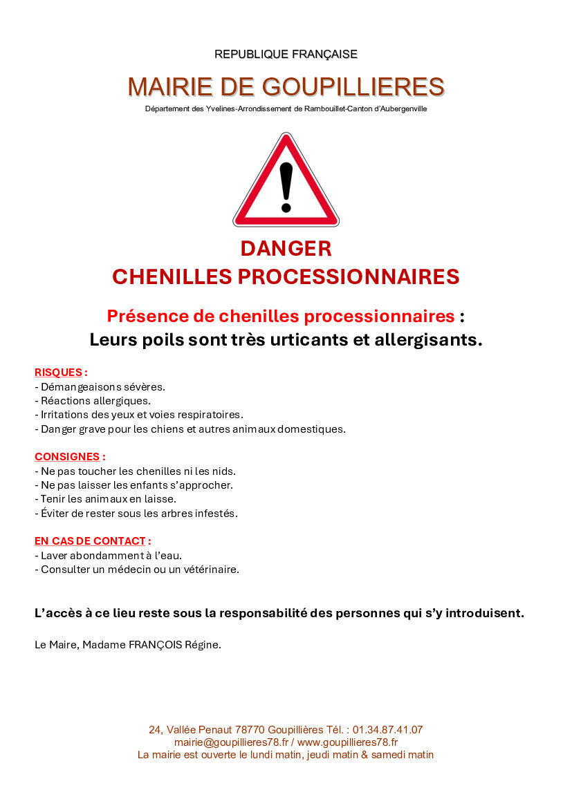 Danger - Chenilles processionnaires - Bois des châtaigniers