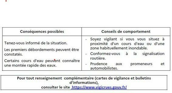VIGILANCE JAUNE RISQUE DE CRUE