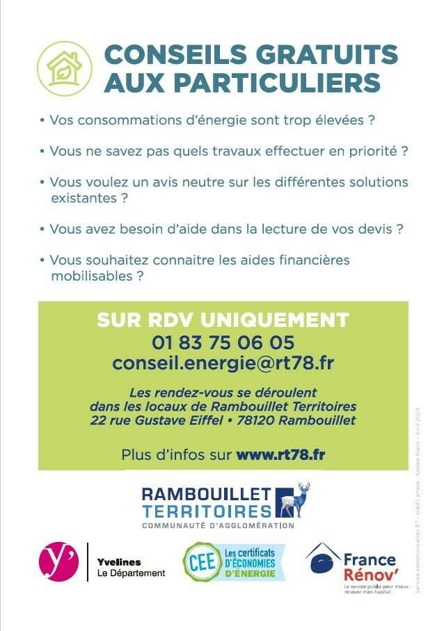 Des permanences Conseil Energie peuvent se dérouler sur Rendez-vous uniquement, dans les locaux de Rambouillet Territoires 22 Rue Gustave Eiffel 78120 RAMBOUILLET.