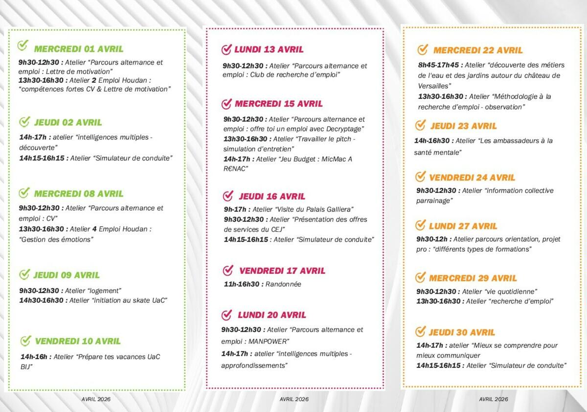 Ci-après le programme de la Mission Locale de Rambouillet pour le mois d'Avril 2026: