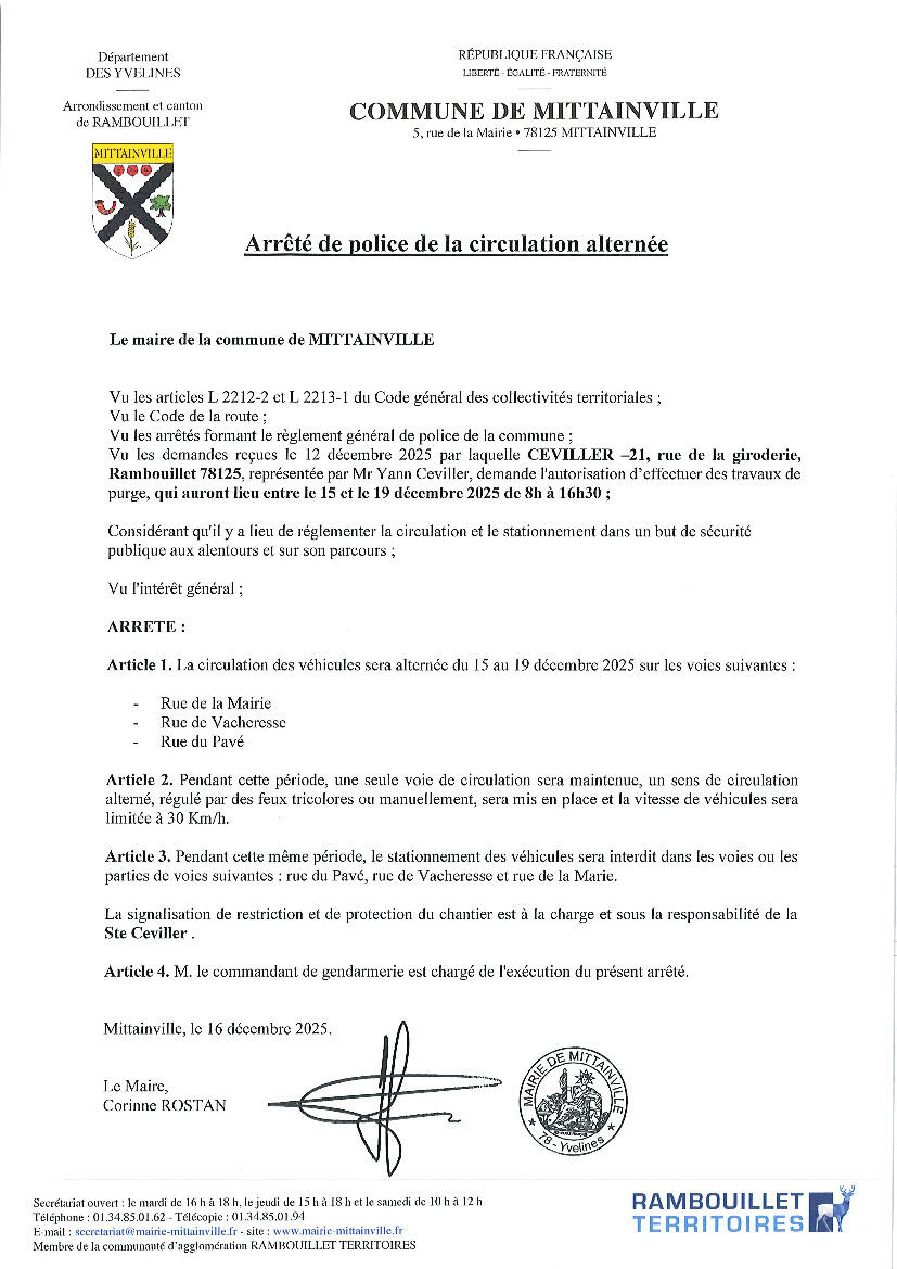 TRAVAUX / ARRETE CIRCULATION ALTERNEE ET STATIONNEMENT