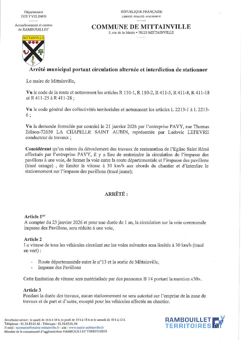 Your town hall / News / ARRETE CIRCULATION ET STATIONNEMENT MITTAINVILLE EGLISE