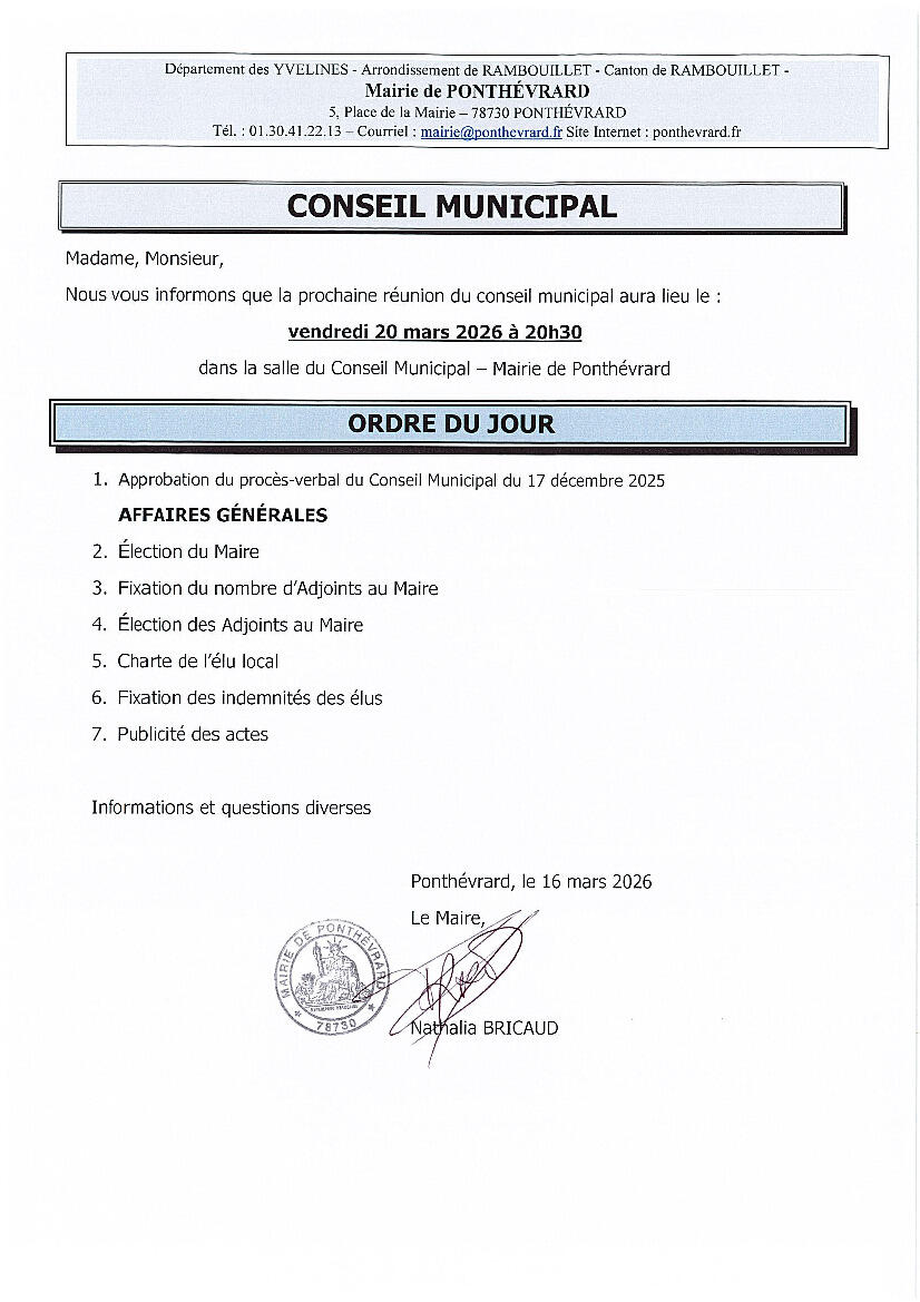 Conseil municipal vendredi 20 mars 2026