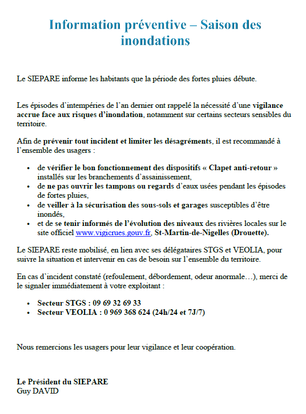 Les bons gestes - Saison des inondations⚠
