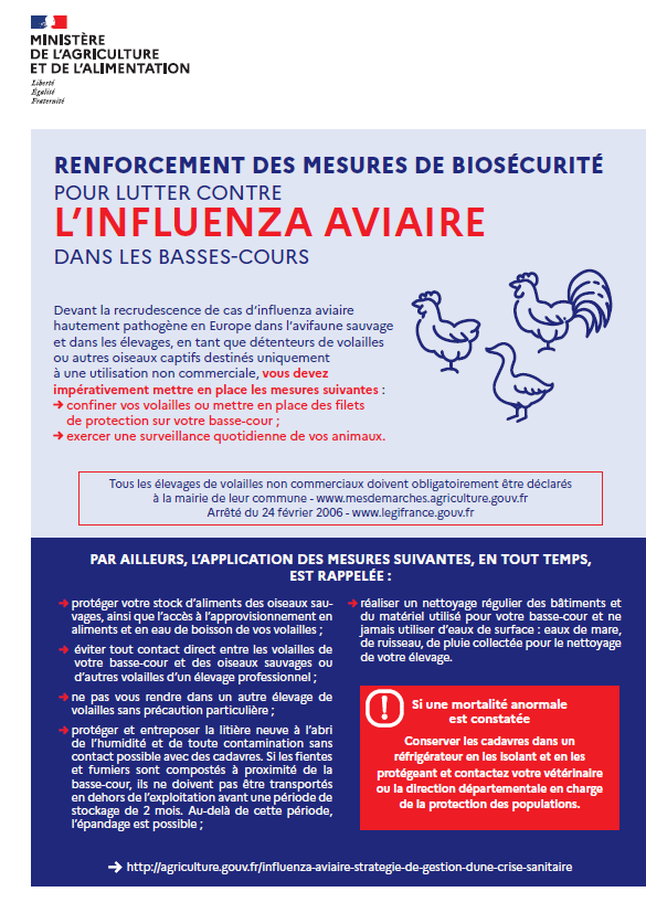 Renforcement du niveau de risque lié à l’influenza aviaire