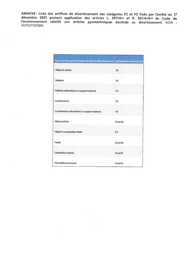 L'utilisation des artifices de divertissement et la distribution de carburants dans des conteneurs individuels  ainsi que leur transport par des particuliers sont interdits du mardi 23 décembre 2025 à partir de 20h jusqu'au vendredi 2 janvier 2026 à 8h.