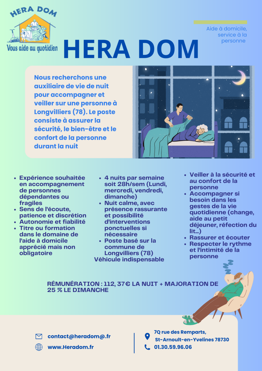 Hera Dom recrute un(e) auxilaire de vie de nuit