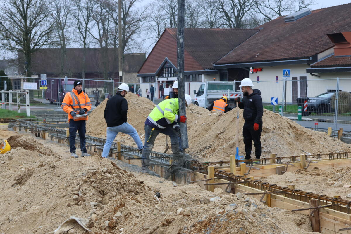 Les travaux de fondation de la maison médicale Docteur André Laucher se poursuivent. Aujourd'hui, deux toupies de béton ont permis de relier entre-eux les 25 pieux de béton.